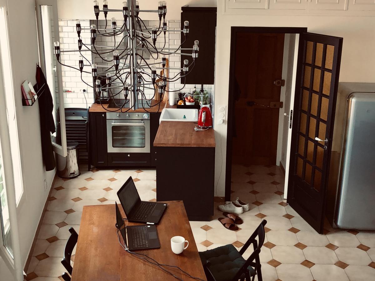 Bilder Vardagsrum Matbord Utsikt Vardagsrum Kök Utsikt Sovalkov Loft Loftvåning Soffa och TV Kök Badrum